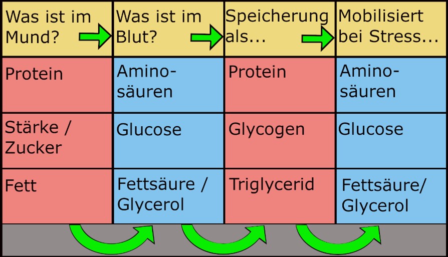 Glucocorticoide, aufgrund von dauerhaftem Stress ausgestossen, haben genau diesem Effekt. Sie können die Bildung von besonders ätzendem Magensaft hemmen und stattdessen einen weniger ätzenden Saft in Auftrag geben. Insgesamt spart das viel Energie ein.